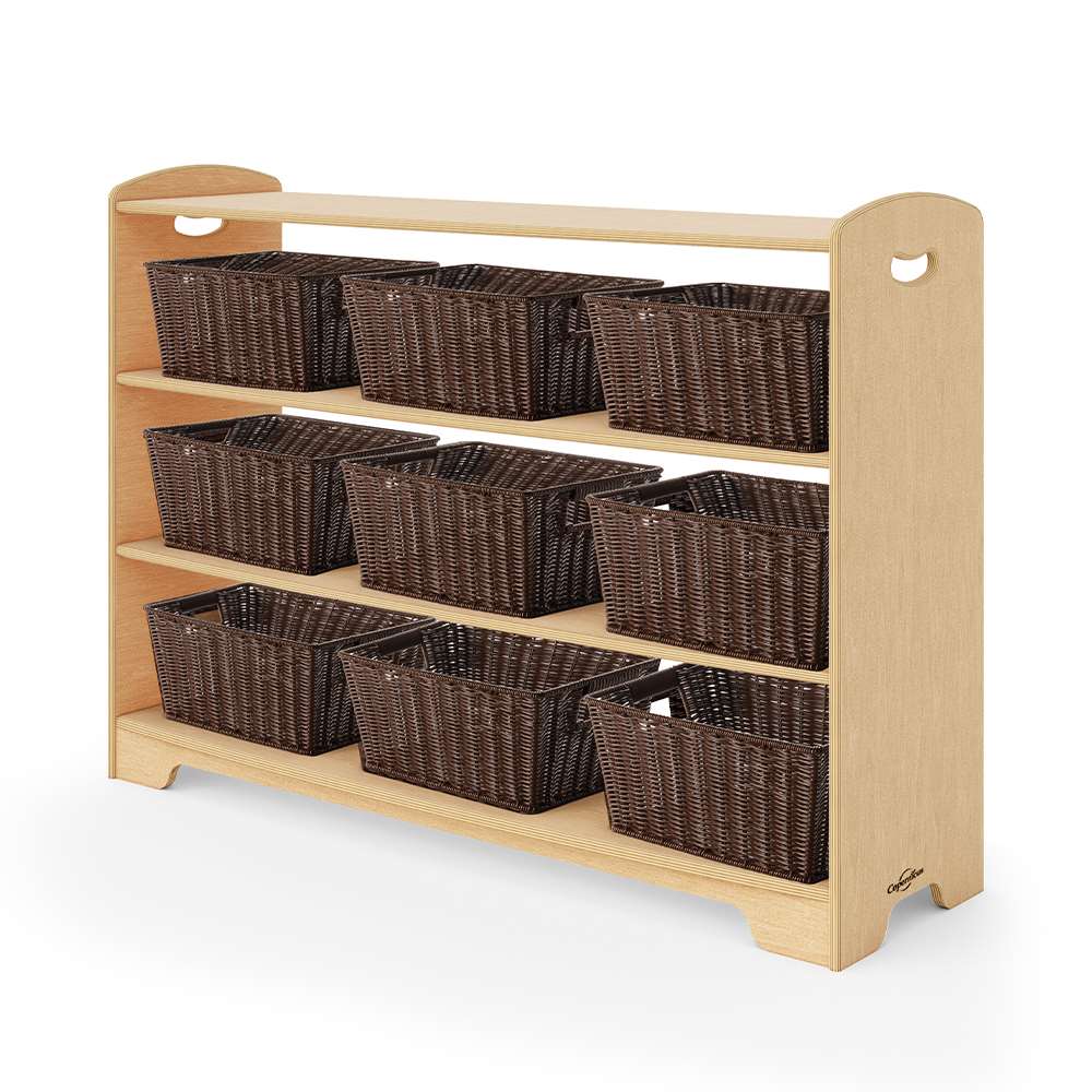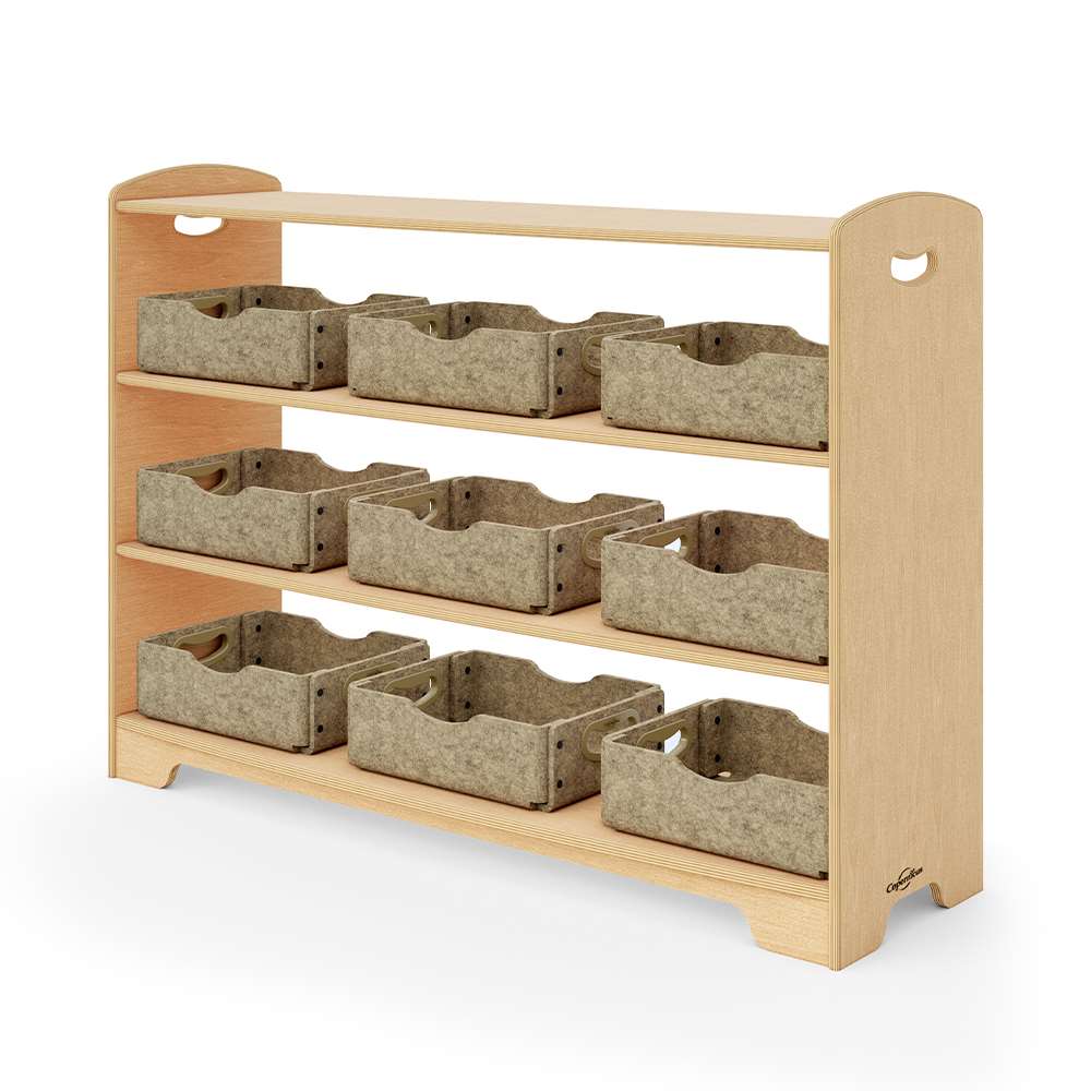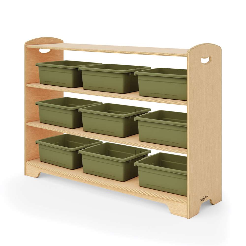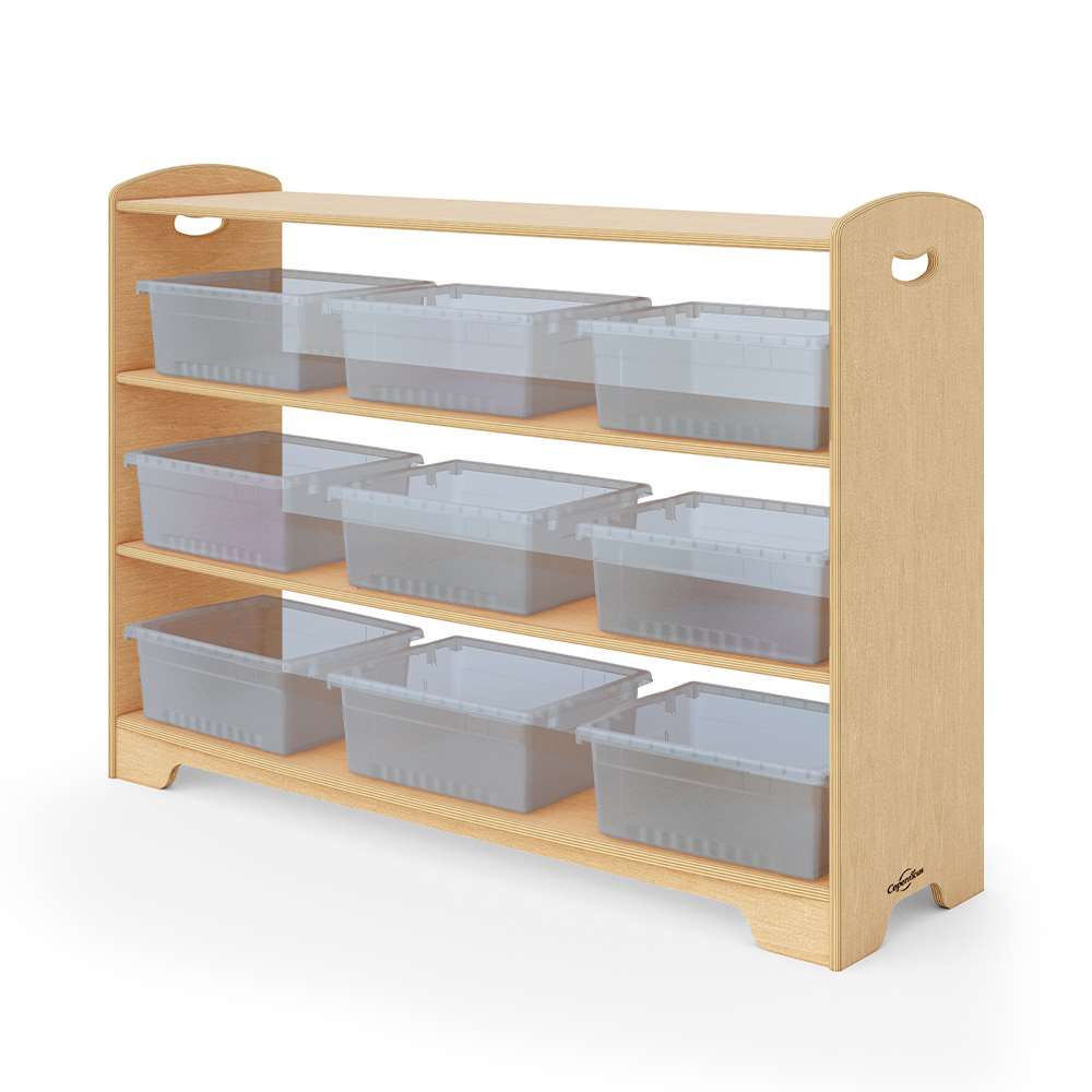 Our open back options allow for more light to travel through the room, give access from both sides and provide clearer sight lines. The staggered design creates different display areas for toys and books or a place for optional storage tubs, bins or baskets. Combine 1, 2 and 3-Level shelves and Curved Corners to customize your space by creating room dividers, reading corners or simply putting them against the wall. Then, sit back and enjoy a well-deserved moment of feeling organized.