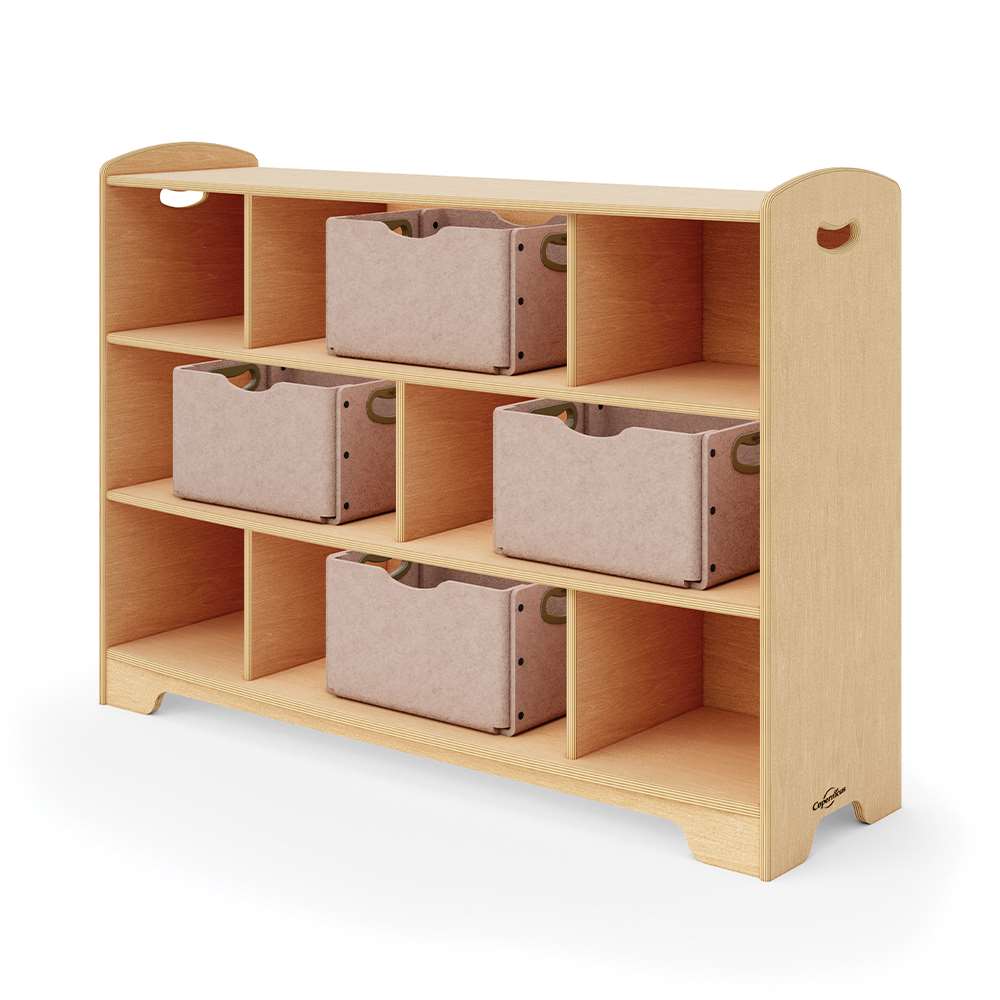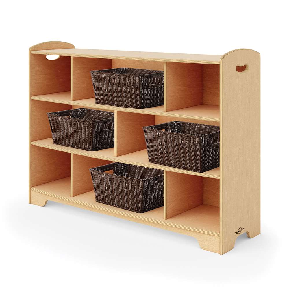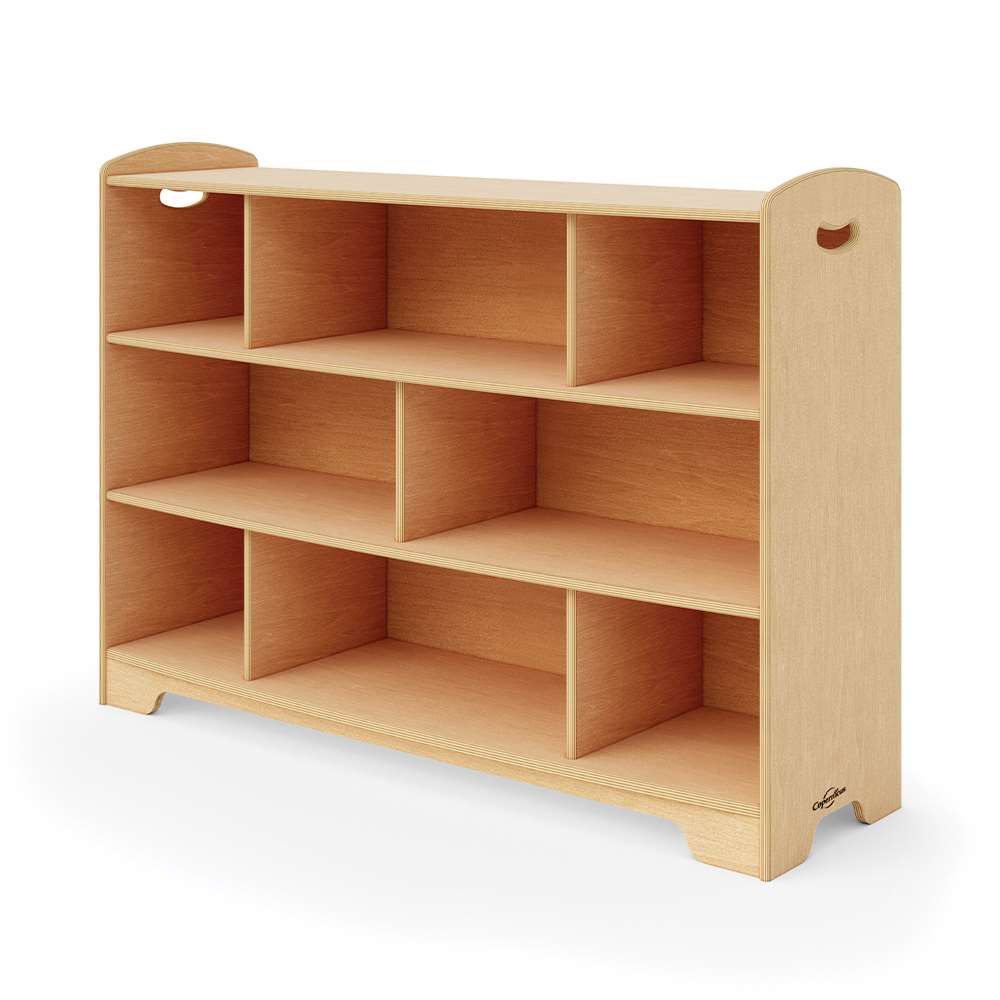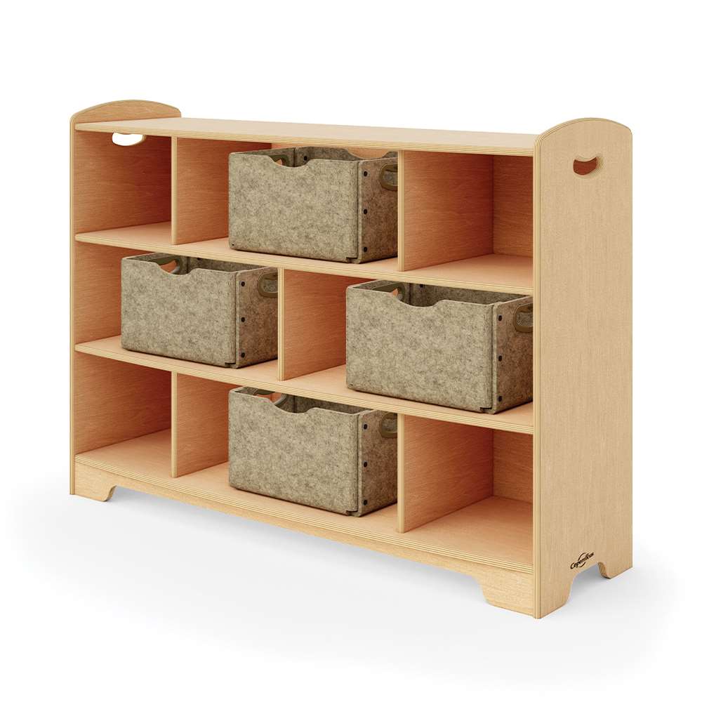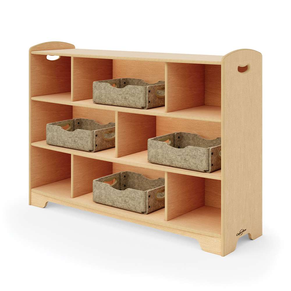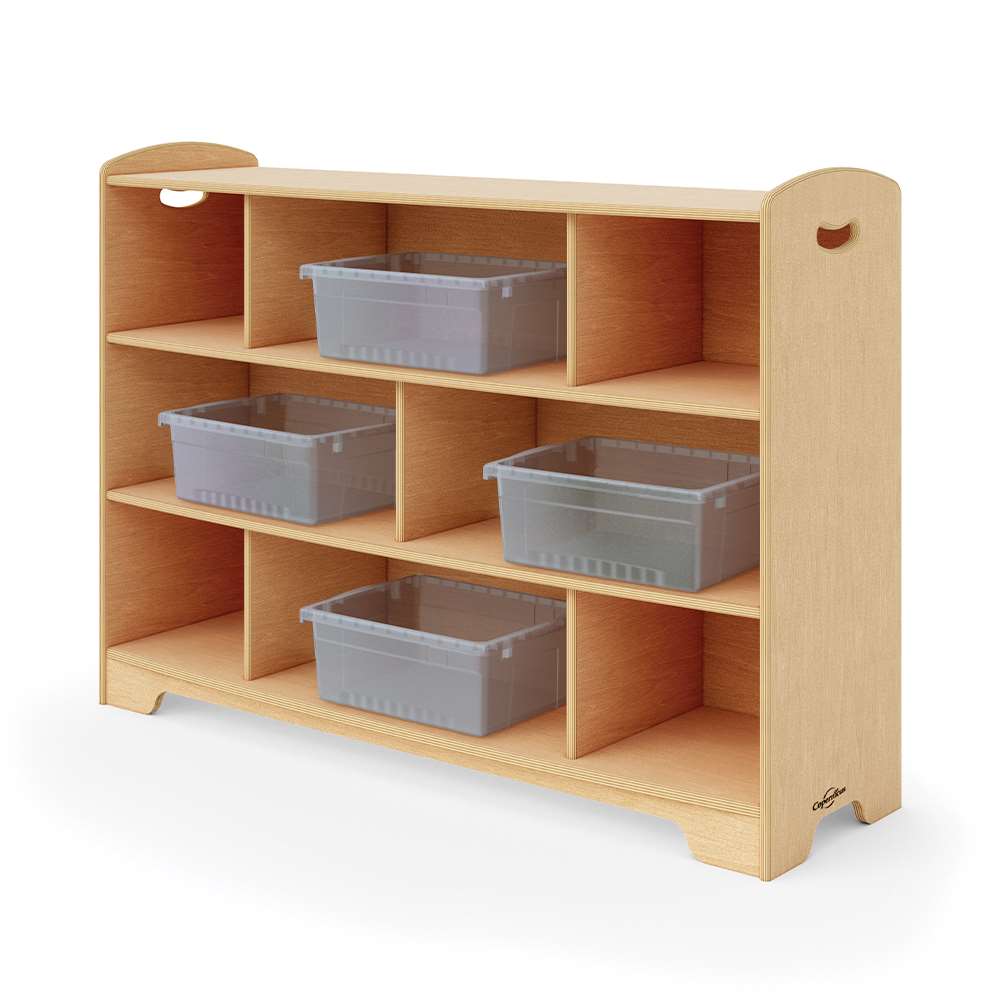 Our open back options allow for more light to travel through the room, give access from both sides and provide clearer sight lines. The staggered design creates different display areas for toys and books or a place for optional storage tubs, bins or baskets. Combine 1, 2 and 3-Level shelves and Curved Corners to customize your space by creating room dividers, reading corners or simply putting them against the wall. Then, sit back and enjoy a well-deserved moment of feeling organized.