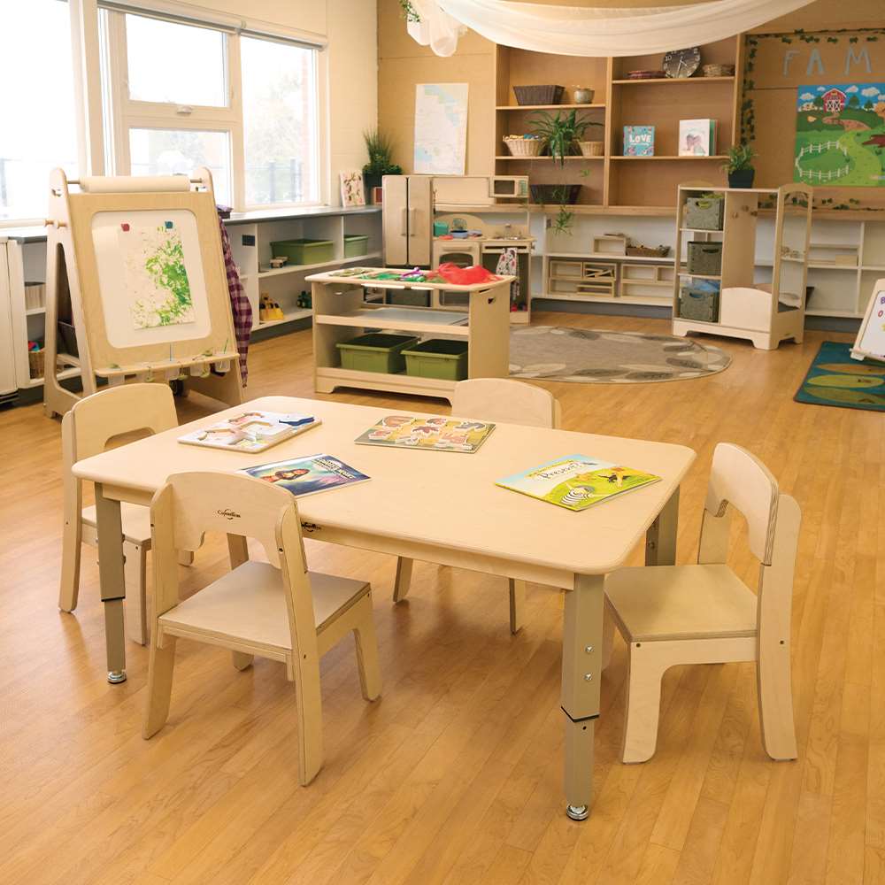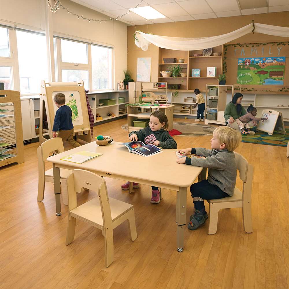Durable, comfortable seating is a necessity. We've thoughtfully designed ours to be ready for rugged use but lightweight and easy to clean. The shape of the backrest makes picking up and moving our chairs more comfortable for teachers and custodians, and all of our chairs stack together (4 high) regardless of size.