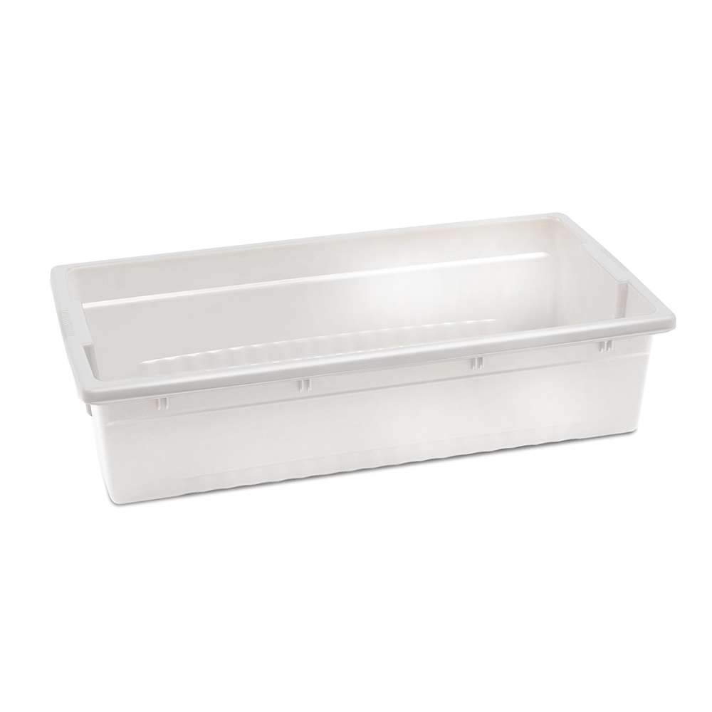 • 1 Really Big Clear Tubs are small enough to lift, and don't require a drain that often leaks or breaks