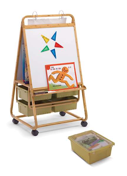 This easel was designed to bring natural elements into the classroom and is ideal for neutral or early years environments. The sturdy frame and shelf is constructed of bamboo, a sustainable and fast growing plant and the Large Open Tubs are made with 100% recycled post-consumer plastic tubs.
